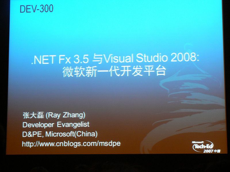 第二次参加这种会议, 第一次是在05年11月, 在上海国际会议中心举办的软件测试会议. 第二次就是这个Tech.Ed 2007了.