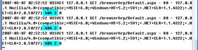 看看IIS的Log文件, 发现我无论请求什么文件, IIS都返回404 2错误, 404是错误代码(status), 2是子代码(sub-status)