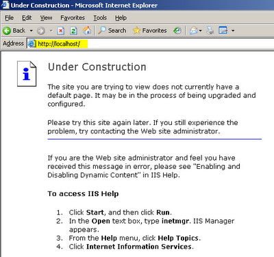 但如果直接输入http://localhost, 不会提示404错误, 而提示Under Construction.