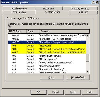 于是查看IIS的Custom Errors, 发现了404;2是"Not Found - Denied due to Lockdown Policy"