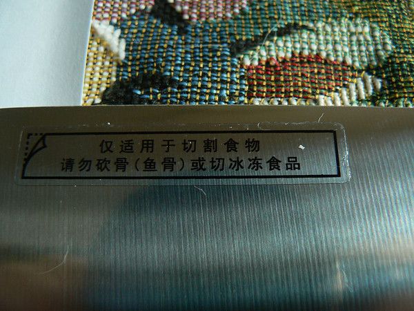 中片刀上的警示文字