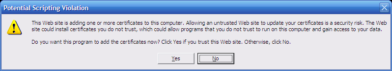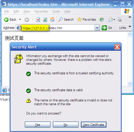 也可以点"Yes", 说明你本人相信证书指定的网站就是你现在访问的网站, 否则就点"No"