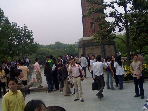 到了楼下,马路两边站满了人,尤其是徐家汇公园前面。我走到徐家汇公园,赶紧掏出手机拍了几张照片。