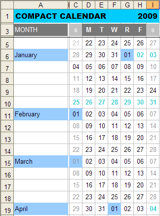 Devid Seah 几个月前就发布了Compact Calendar 2009. 我把中国的假期添加到了上面, 修改成了中国版. 希望你能够喜欢.